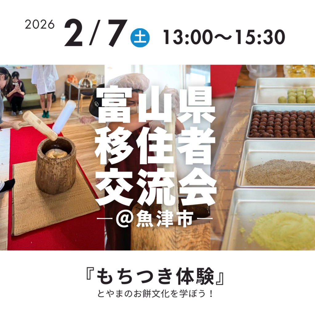 New!富山県移住者交流会(魚津市)参加者募集!<開催日>2026年2月7日(土)13:00~15:30 (受付開始 12:45~)