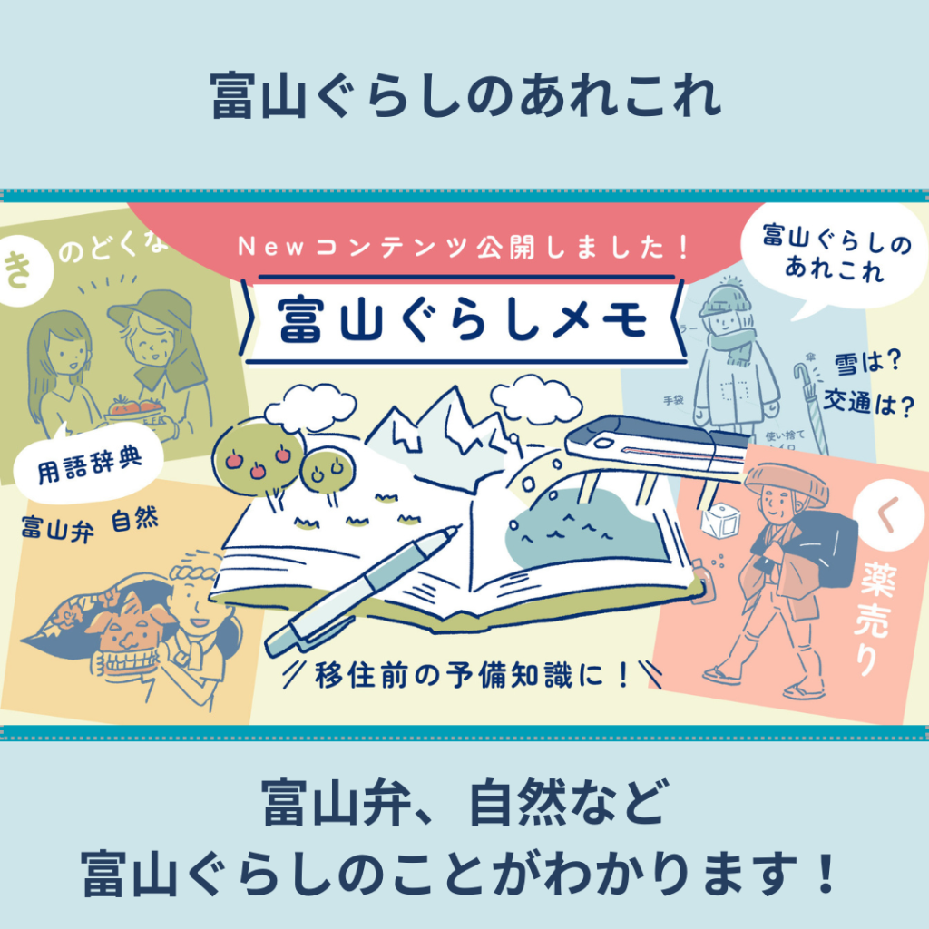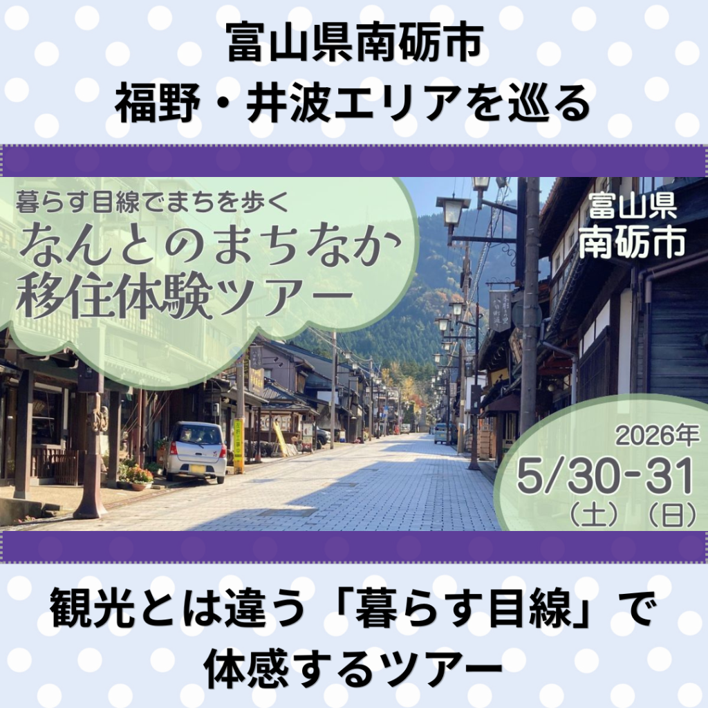 コンパクトな県で、県庁所在地のある富山市から県内各地へは、ほぼ1時間圏内で移動できます。また、海と山の距離が非常に近いため、「田舎ぐらし」を不便なく楽しめるのも魅力です。