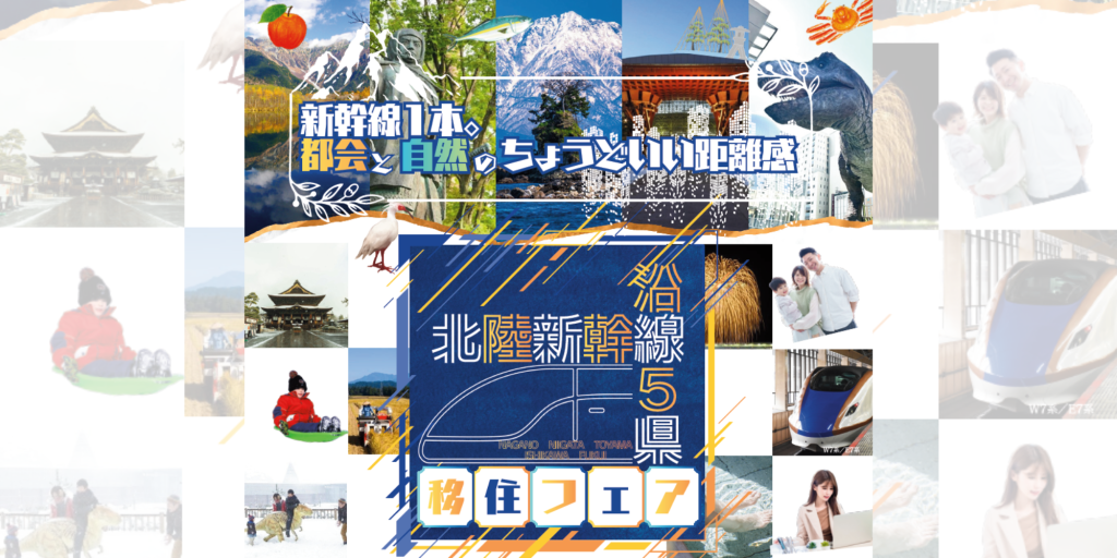 首都圏と北信越地方を結ぶ北陸新幹線の沿線にある、長野県、新潟県、富山県、石川県、福井県の5県が合同で開催する移住フェア。