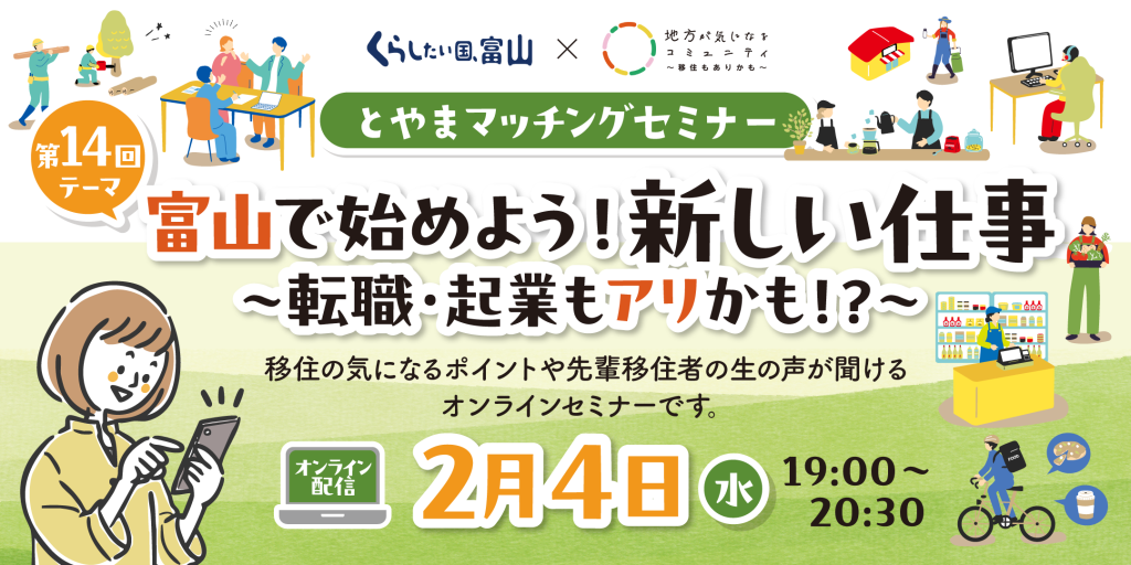 【視聴者の中から抽選で富山の特産品プレゼント♪参加者募集中!】とやまマッチングセミナー「富山で始めよう!新しい仕事 ~転職・起業もアリかも!?~」