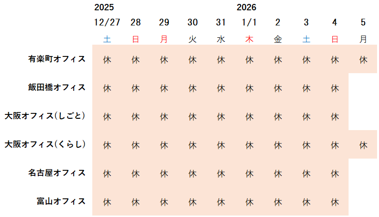 富山くらし・しごと支援センターは、下記日程で年末年始休業といたします。